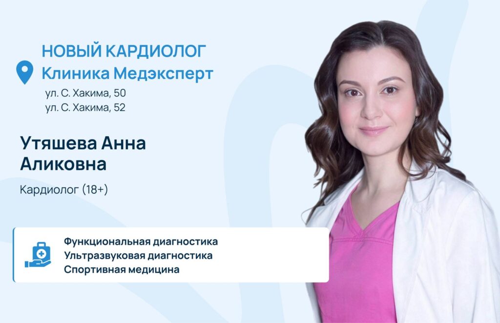 Знакомьтесь — Утяшева Анна Аликовна, кардиолог и специалист по УЗИ и функциональной диагностике. Внимательный, чуткий подход и высокая квалификация — здесь это сочетается. Анна Аликовна поможет, когда речь идет о здоровье сердца, диагностике для всей семьи, поддержке будущих мам и спортсменов.